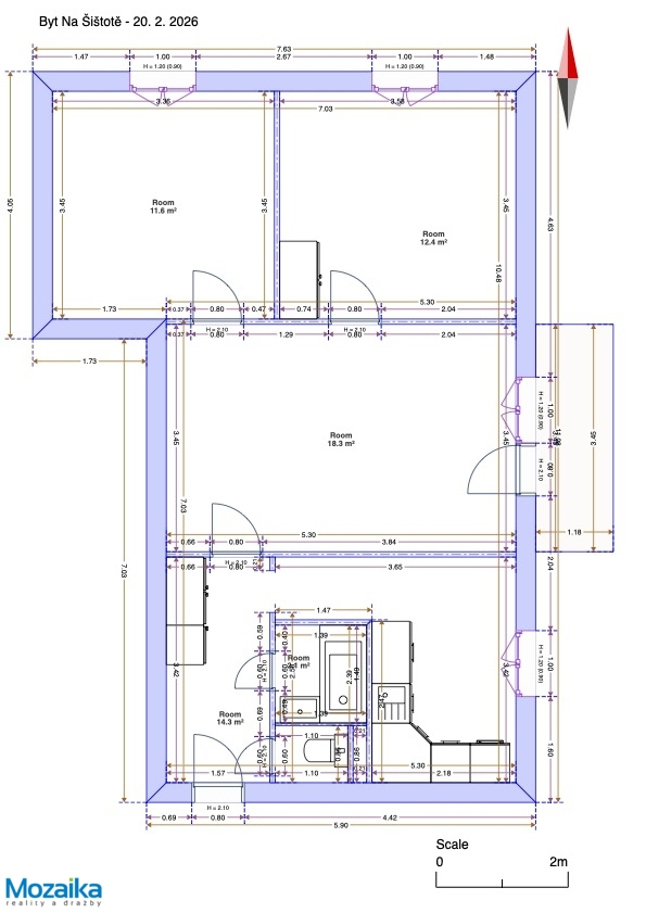 Byt má praktickou a promyšlenou dispozici s celkovou užitnou plochou bytu 64 m², místnosti jsou velmi chytře a funkčně uspořádány. Po vstupu do bytu přes vstupní chodbu máte po ruce samostatné WC a koupelnu s vanou a umyvadlem – praktické řešení pro rodiny i páry, kdy ranní přípravy probíhají hladce a bez zbytečného čekání. Kuchyně je vybavena rohovou kuchyňskou linkou se sporákem, která nabízí dostatek odkládacího i pracovního prostoru pro přípravu chutných domácích jídel. Z obývacího pokoje jsou přístupné dva neprůchozí pokoje, které zajišťují maximální soukromí každému členu domácnosti. Oba pokoje jsou tiché, útulné a ideální pro klidný spánek nebo práci z domova.