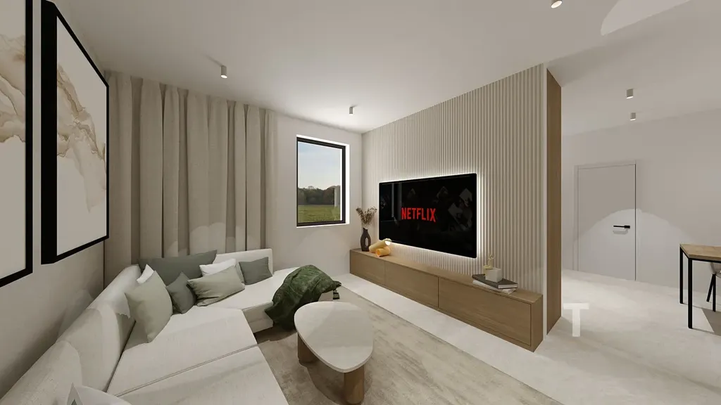 Toto řešení nabízí ideální kombinaci vlastního bydlení a možnosti pasivního příjmu, případně vícegeneračního bydlení. Standard bytů odpovídá moderním nárokům na komfort a design: vinylové podlahy, keramická dlažba, kvalitní sanita, podlahové vytápění s regulací po místnostech, plastová okna s trojsklem, příprava na klimatizaci a designové černé baterie Hansgrohe. K jednotkám náleží sklep.