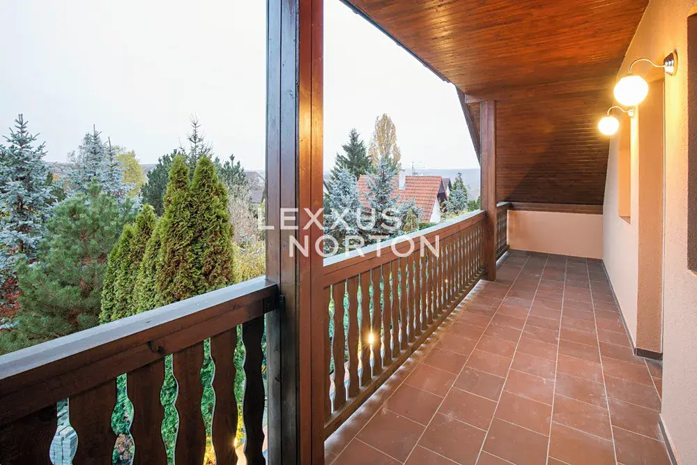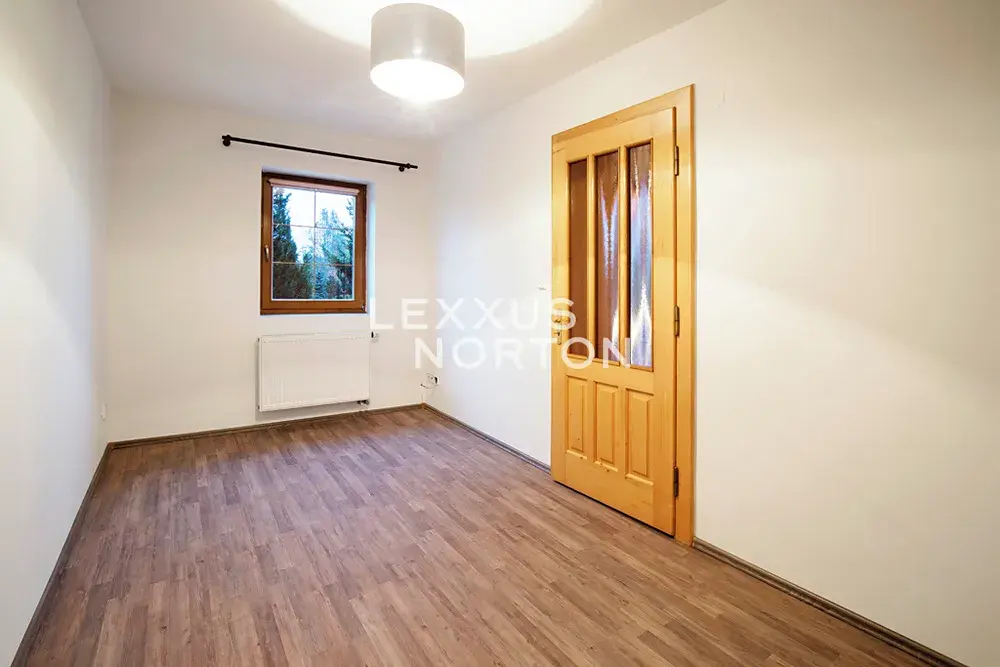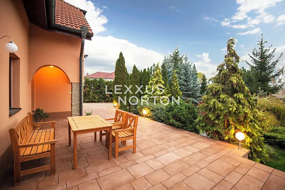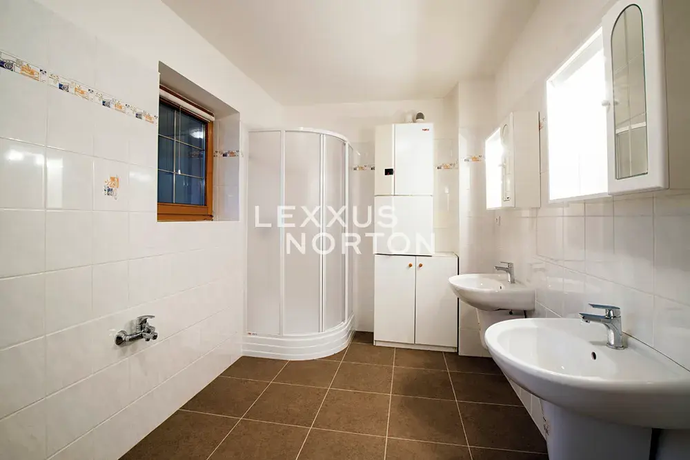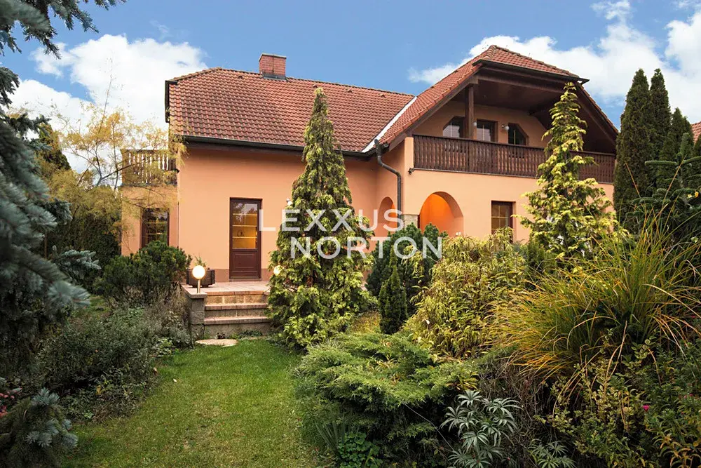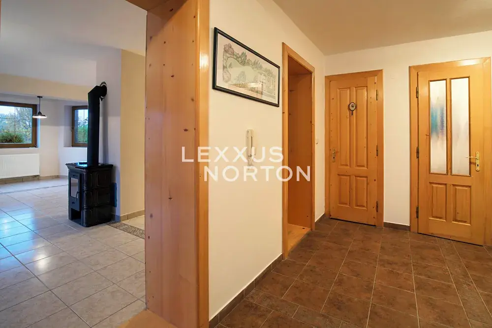 Tento prostorný rodinný dům o dispozici 5+kk nabízí celkovou obytnou plochu 200 m2, rozloženou do dvou nadzemních podlaží. V přízemí se nachází vstupní hala, obývací pokoj s krbem, kuchyňský kout a jídelní prostor, pracovna/ložnice, koupelna, samostatná toaleta a komora. V patře domu jsou umístěny tři ložnice, z nichž dvě mají přímý přístup na balkony, druhá koupelna a komora. K domu náleží terasa, udržovaná zahrada (2670 m2) s okrasnou zelení a vzrostlými stromy a garáž.