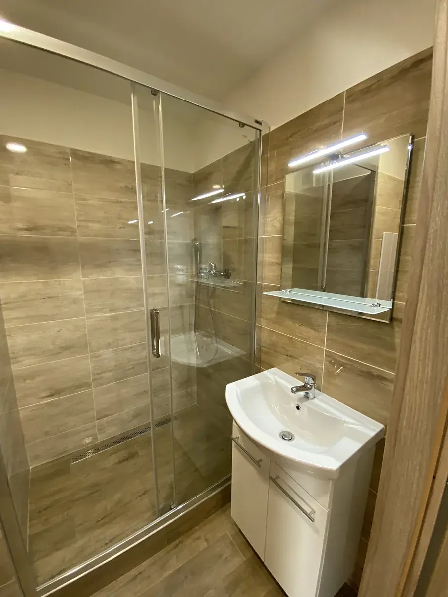 Pronájem krásného bytu 2+kk po kompletní rekonstrukci v klidné lokalitě Liberec Doubí. Byt je ve 1.patře malého panelového domu, který má pouze 4.patra a je bez výtahu. V bytě byla provedena kompletní rekonstrukce - štuky, dveře včetně obložek, koupelna s velkým sprchovým koutem, skříňka s umyvadlem, zrcadlo s poličkou a světlem, nové podlahy v celém bytě – v pokojích jsou koberce, v předsíni a koupelně je dlažba. Kuchyňská linka včetně elektrického sporáku . Byt má velmi dobrou dispozici - velká a prostorná předsíň, uprostřed je vstup do koupelny a dále je na každé straně chodby je vstup do obou místností. Dům je také po kompletní rekonstrukci - fasáda, zateplení, okna, stoupačky. Velmi nízké náklady na bydlení. Velmi slušná klientela. Pouze 8 bytů v domě. K bytu patří velká sklepní koje a další zděná komora, společná pro 2 byty. Kolem domu je spousty zeleně. Nechceme kuřáky a domácí mazlíčky. Holý nájem je 13.500,-Kč, náklady na 2 osoby cca 2.900,-Kč + elektřina, kauce 27.000,-Kč. Provize RK 13.500,-Kč. Volný ihned.