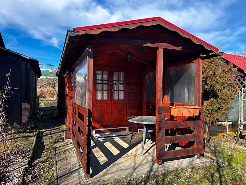 Nabízíme k prodeji dřevěnou chatku v osobním vlastnictví o celkové zastavěné ploše 14 m2, kdy z této výměry tvoří polovinu obytná část a polovinu zastřešená terasa.