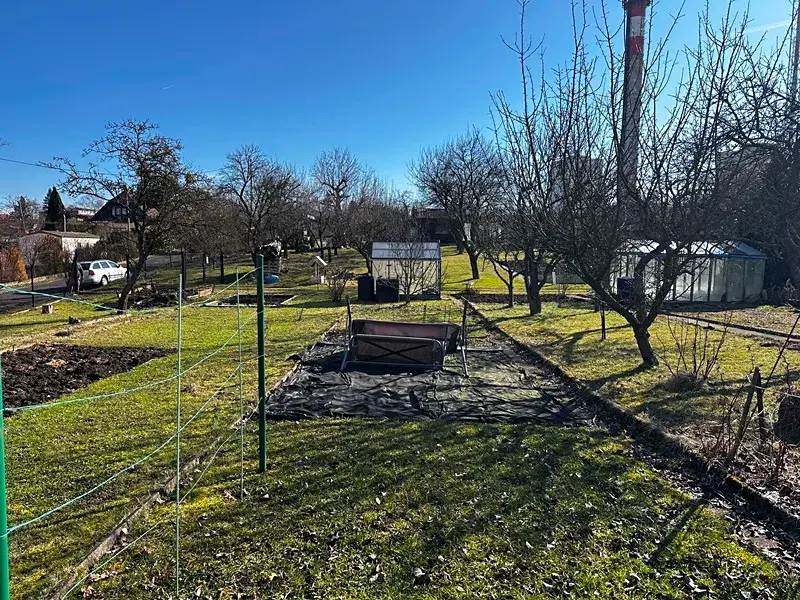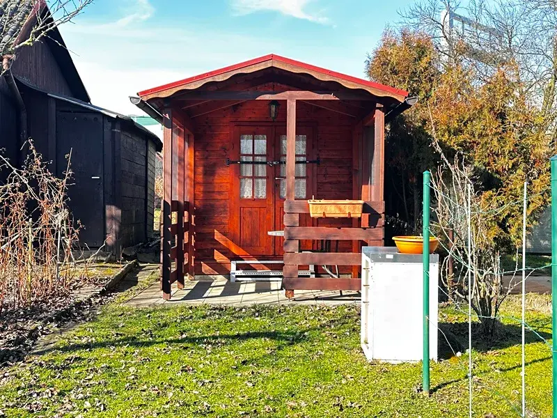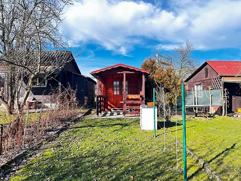 Chatka se nachází na pozemku o výměře 126 m2, který je v nájmu od spolku zahrádkářů na