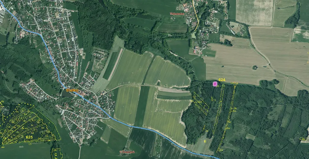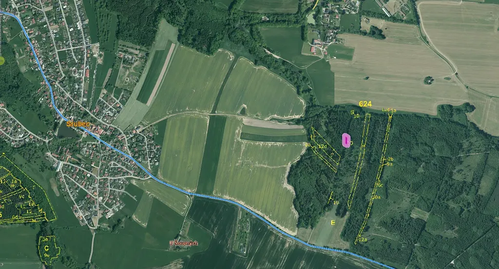 Prodej pozemků p.č. 1066/23 o výměře 449 m2 s druhem pozemku lesní pozemek a pozemek p.č. 1066/46, o výměře 228 m2, s druhem pozemku lesní pozemek, oba v k.ú. Srubec. Pozemky jsou vedeny se způsobem ochrany PUPFL. Nachází se východně od obce Srubec, dle územního plánu mimo zastavěné území obce, jako plochy lesní, všeobecné. Pozemky jsou nepravidelných, úzkých malých tvarů a nenavazují na sebe. Nachází se uvnitř a při okraji lesního komplexu v lokalitě s místním názvem Hrbatý.