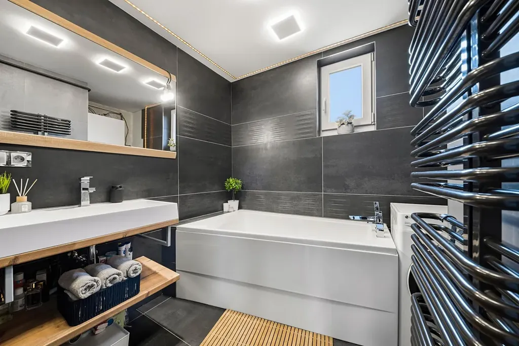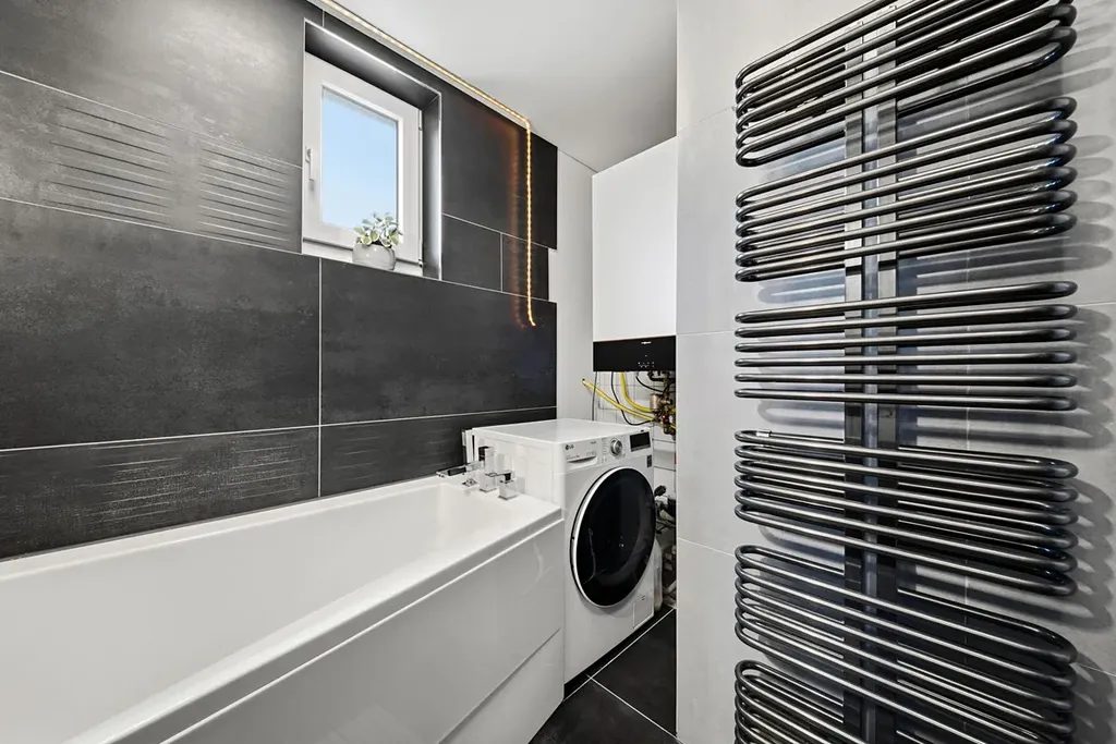 Přední část domu je zateplena minerální vatou o tloušťce 160 mm a v rámci rekonstrukce bylo provedeno také odhlučnění sousední stěny pomocí akustického SDK systému. Objekt je napojen na veškeré inženýrské sítě veřejnou kanalizaci, vodovod, plyn i elektřinu, přičemž elektroinstalace byla kompletně obnovena a jsou zde nové měděné rozvody. Vytápění domu zajišťuje plynový kondenzační kotel Viessmann instalovaný v roce 2024, doplňkovým zdrojem vytápění mohou být krbová kamna, která však současný majitel nevyužívá. V koupelně je realizováno podlahové vytápění. V přízemí domu byly provedeny nové podlahy včetně tepelné izolace z podlahového polystyrenu o tloušťce cca 5 cm a nových betonových potěrů.