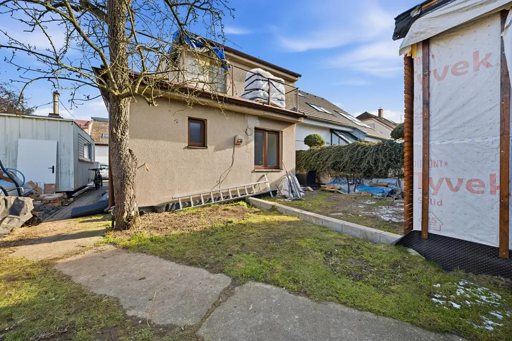 Součástí pozemku je také zahradní domek o ploše přibližně 40 m2, který nabízí možnost propojení s hlavním objektem a rozšíření užitného prostoru.Zahradní dům má izolační trojskla a jedná se o zateplený sendvičový systém, konstrukce dřevostavba. Lze jej využít například jako letní griloviště, wellness zónu, domácí kancelář nebo ateliér.