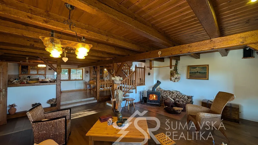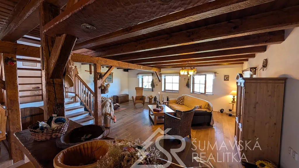 DŮM NA SAMOTĚ U LESA S FANTASTICKÝM PANORAMATICKÝM VÝHLEDEM, OSTRUŽNO NA ŠUMAVĚ. Často jezdím na kole po Šumavě a nedávno jsem zabloudil do lokality pod hradem Kašperk, kde jsem narazil na samotu pod lesem s naprosto nádherným výhledem. V úžasu jsem si doslova sedl na zadek a kochal se dalekými výhledy až na Brdy. „Tak to je luxusní místo. “ říkal jsem si tehdy a náhoda tomu chtěla, že se pak v naší kanceláři objevil sám pan majitel a dal nám tento šperk mezi nemovitostmi prodat.
