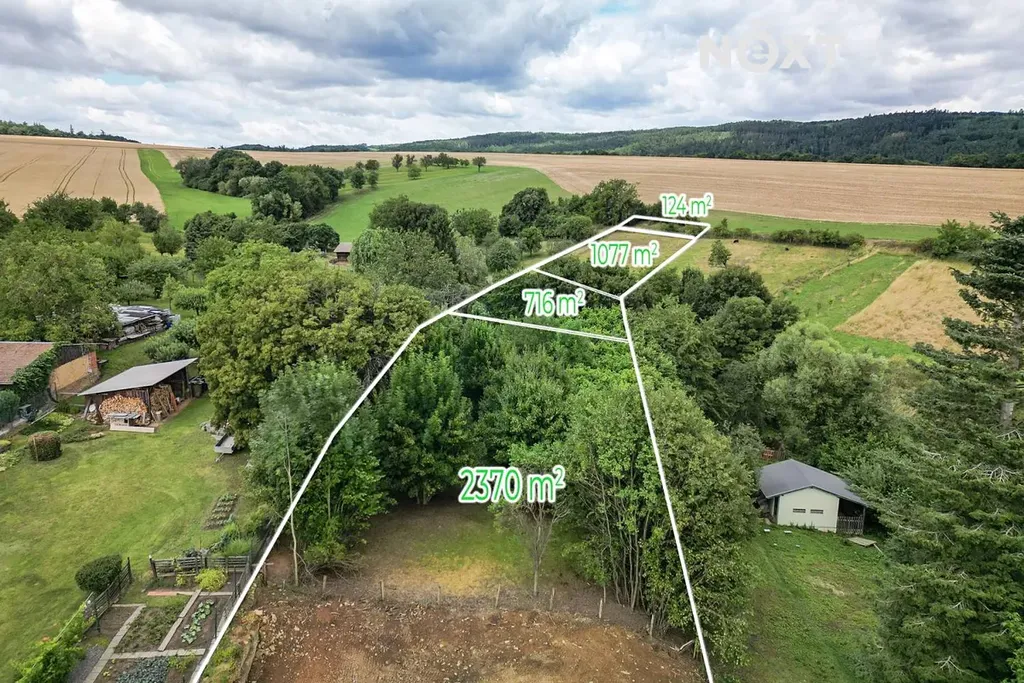 Z celkové plochy je 828 m² čistě stavební parcela určená k výstavbě rodinného domu.
