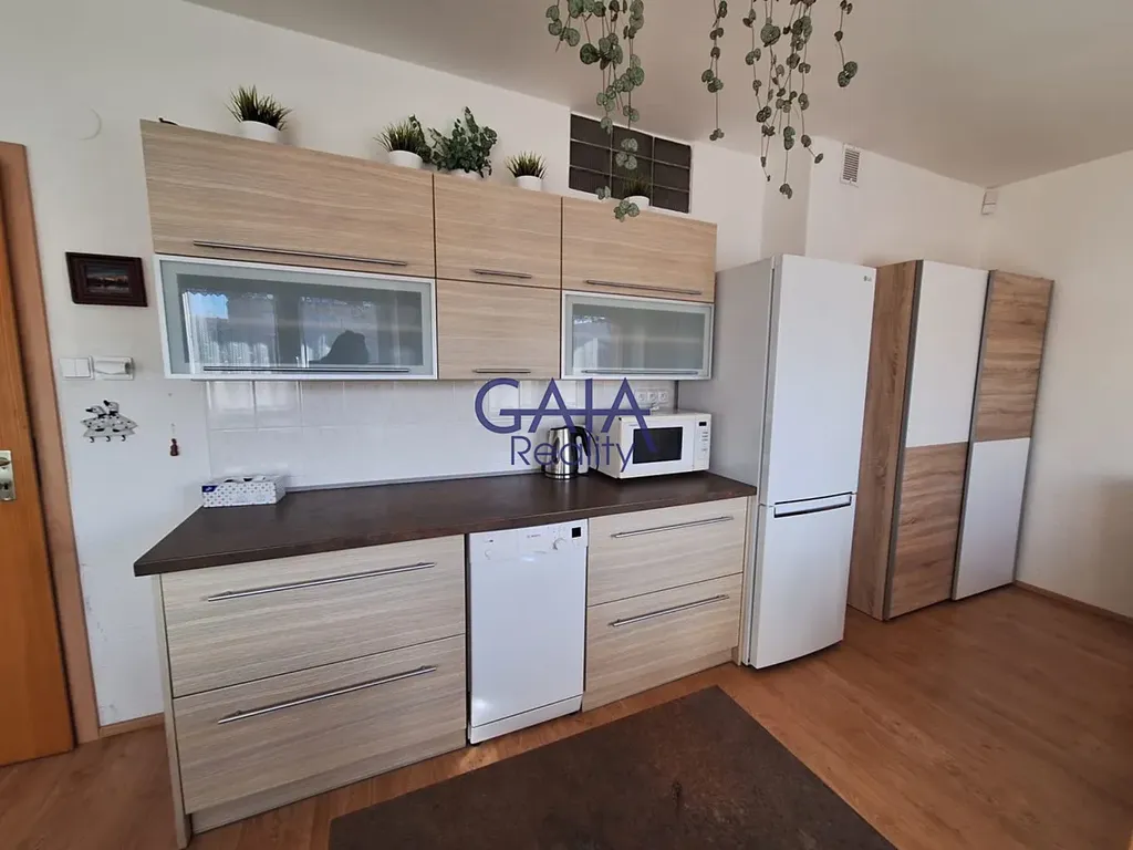 Dispozice bytu zahrnuje obývací pokoj, samostatnou ložnici, plně vybavenou kuchyni, koupelnu se sprchovým koutem a toaletou a praktickou spíž. Byt je vybaven zabezpečovacím systémem a centrálním vysavačem. Pronajímá se kompletně zařízený a je připraven k okamžitému nastěhování.