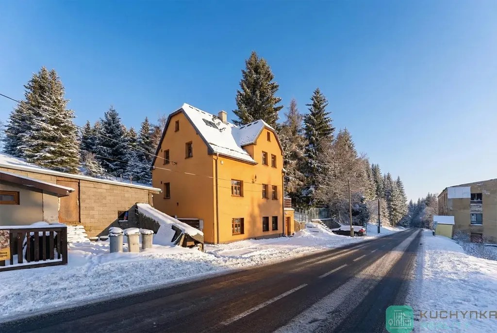 V nejnavštěvovanější části Krušných hor mám pro Vás na prodej Vilu a to pouhé 3 km od severního parkoviště pod Klínovcem. Přímo naproti vily je zastávka skibusu. Díky česko-německému projektu je možné lyžovat na jeden skipas i za hranicemi ve ski areálu Fichtelberg. Od jara do podzimu je v provozu bikepark na Klínovci. V okolí řada turistických tras a cyklostezek, krásné lesy na houbaření. Místo, které má neuvěřitelný potenciál. Kousek od Vily vede úzká silnička vhodná i pro pěší (Stezka Českem) na nádraží Kovářská a na druhou stranu na Klínovec.