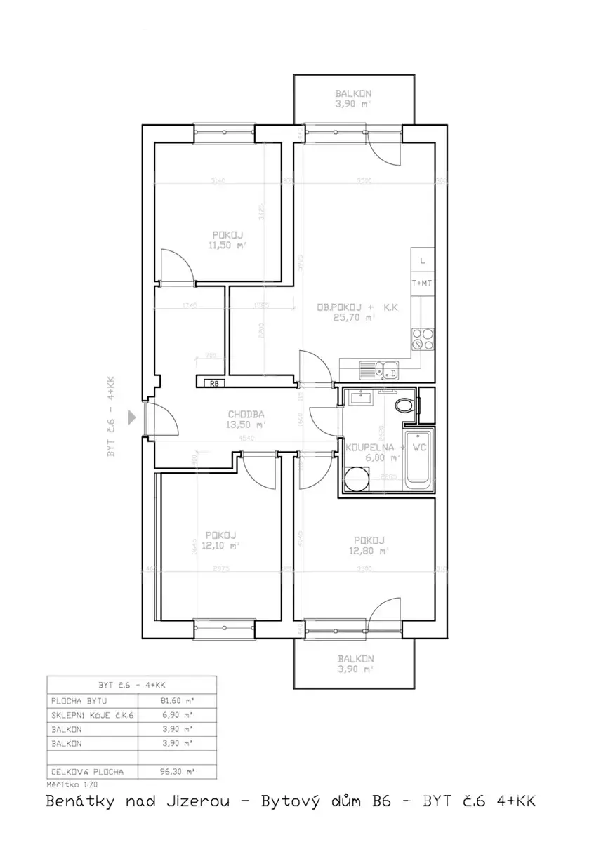 Nabízíme nový byt v novostavbě domu v Benátkách nad Jizerou o dispozici 4+kk o rozloze 81.9 m2, který je perfektním spojením moderního života a klidného okolí. Tento byt se nachází ve druhém nadzemním podlaží elegantní novostavby v malebných Benátkách nad Jizerou. Součástí bytu je 2 x balkón o výměře 3.9 m2 (celkem 7.8m2), který nabízí příjemný prostor ke kávě nebo odpočinku. V obývacím pokoji najdete přípravu pro zařízení kuchyňského koutu s přímým přístupem na balkón. Byt je dále vybaven moderní koupelnou s rohovou vanou a toaletou. V ceně bytu je zahrnuta i sklepní kóje o rozloze 6,9 m2, která poskytuje dostatek úložného prostoru. Tento byt je součástí nového komplexu třípodlažních cihlových domů, který se nachází na slunném jižním svahu na okraji města s impozantním výhledem na zámek. Benátky nad Jizerou jsou idylické město s bohatou historií a širokou škálou možností pro volnočasové aktivity. Zde najdete vše, co potřebujete pro pohodlný život, včetně obchodů, škol, zdravotnických zařízení a sportovních areálů. Město je obklopeno krásnou přírodou, což je ideální pro pěší turistiku, cykloturistiku nebo rybaření. Tento dům je již dokončen. Pro více informací nebo prohlídku kontaktujte makléře.
