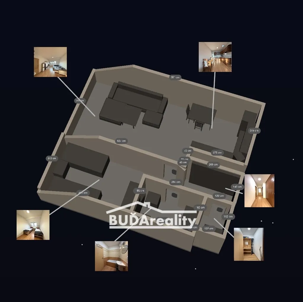 Prostorný byt v 3. podlaží splňuje požadavky moderního bydlení. Disponuje vstupní chodbou se skříněmi na míru, ze které vstoupíte do všech místností v bytě. U vstupu se nachází komora, která částečně slouží místo sklepní kóje. Na konci chodby je vstup do ložnice a kuchyně s obývacím pokojem. Kuchyň je vybavena prostornou kuchyňskou linkou s vestavěnými el. spotřebiči, varnou deskou, troubou a digestoří. Kuchyň je propojená s obývacím pokojem. Prostorná koupelna disponuje vanou, wc , umyvadlem a přípojkou na pračku. Podlahy - dlažba, plovoucí podlaha a na oknech jsou vnitřní okenní žaluzie. Velkou výhodou domu je vlastní plynový kotel a možnost parkování na uzavřeném venkovním prostoru za domem, kde je vjezd pouze na dálkové ovládání el.brány. Nabízí v budoucnu možnost pronájmu či koupě parkovacího místa za domem nebo garáže. V přízemí je místnost pro kočárky a kola, které jsou k bytu k užívání.