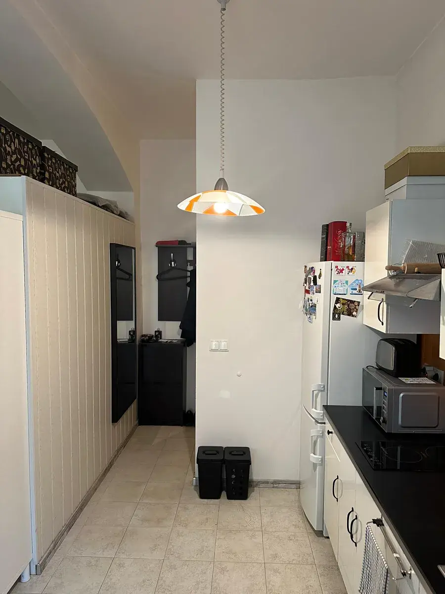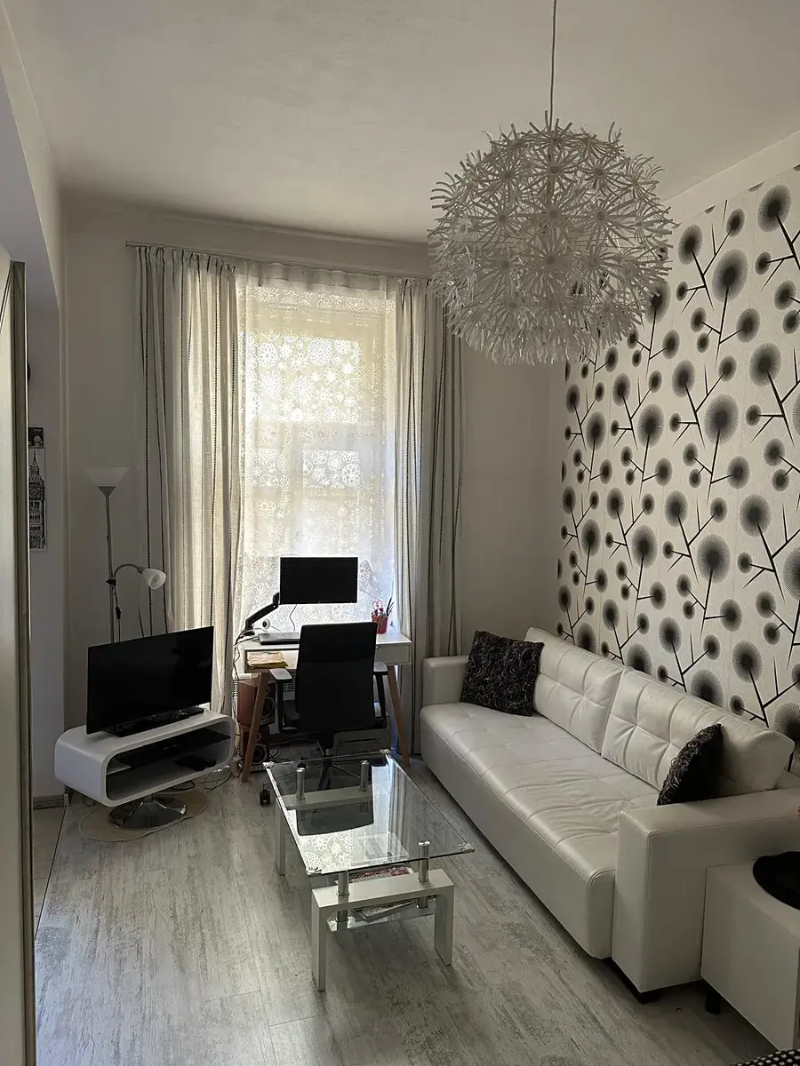 Byt se nachází v přízemí udržovaného domu a je ideální pro jednotlivce či pár. Dispozice nabízí prostorný obývací pokoj s dvoulůžkem, pohodlný gauč, pracovní stůl, jídelní prostor a plně vybavený kuchyňský kout (lednice, mikrovlnka, varná deska, digestoř). Koupelna je se sprchovým koutem, pračkou a WC.