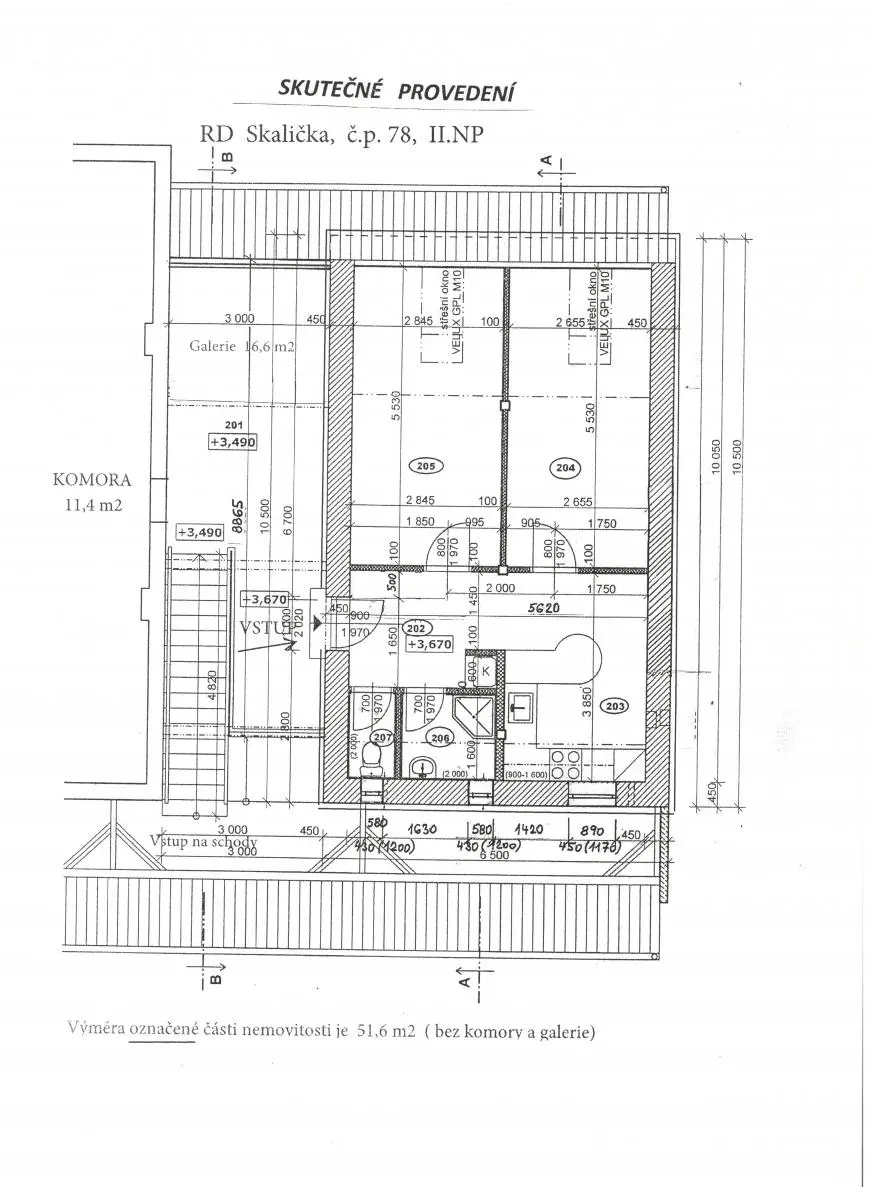 Byt o dispozici 2+1 je umístěný v podkroví RD.