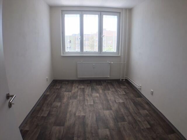 Bytová jednotka prošla v roce 2022 kompletní rekonstrukcí. Má vyzděné jádro, koupelnu s vanou a prostorem pro pračku, samostatné WC a kuchyň s rohovou linkou vybavenou sklokeramickou varnou deskou a elektrickou troubou. Dispozice zahrnuje tři pokoje, z nichž dva jsou neprůchozí; jeden z nich má přímý vstup na lodžii. Praktickým benefitem je komora a dostatek prostoru pro vestavěné skříně.