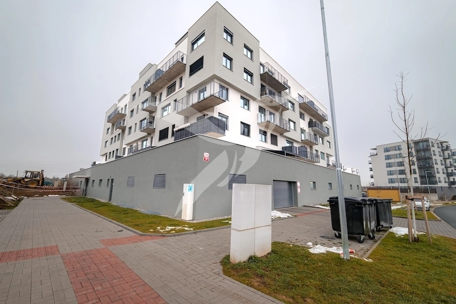 Součástí pronájmu je kryté (garážové) parkovací stání a velmi prostorný sklep (cca 7 m2). Druhé kryté (garážové) parkovací stání je možné k bytu v případě zájmu pronajmout za zvýhodněnou částku 1 200 Kč / měsíc. V domě je dále k dispozici uzamykatelná kolárna/kočárkovna. Dům disponuje velkým atriem což působí velice vzdušným dojmem.