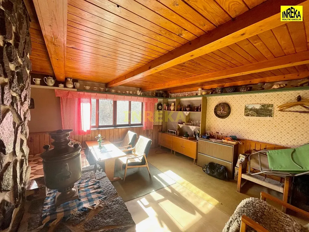 Na neoploceném pozemku se dále nachází skladový objekt, celková plocha pozemku je 344 m2 (ZP chaty 33 m2, zahrada 311 m2). Příjezd k chatě po obecní cestě.