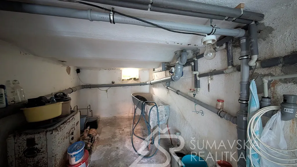 Dispozice: v přízemí je garáž a tři sklepy. V patře je veranda, chodba, ložnice s luxusní švédskou postelí zn. Hästens, koupelna s podlahovým vytápěním, kuchyň s obývacím pokojem a dřevěnými schody do patra. V podkroví je předpokoj, ložnice/dětský pokoj a koupelna. Celé podkroví je nově obloženo dřevěnými palubkami. Ze štítu je přístup po ocelovém schodišti na menší půdu. Vedle domu je kolna o rozměrech 5,0 x 8,0 m.