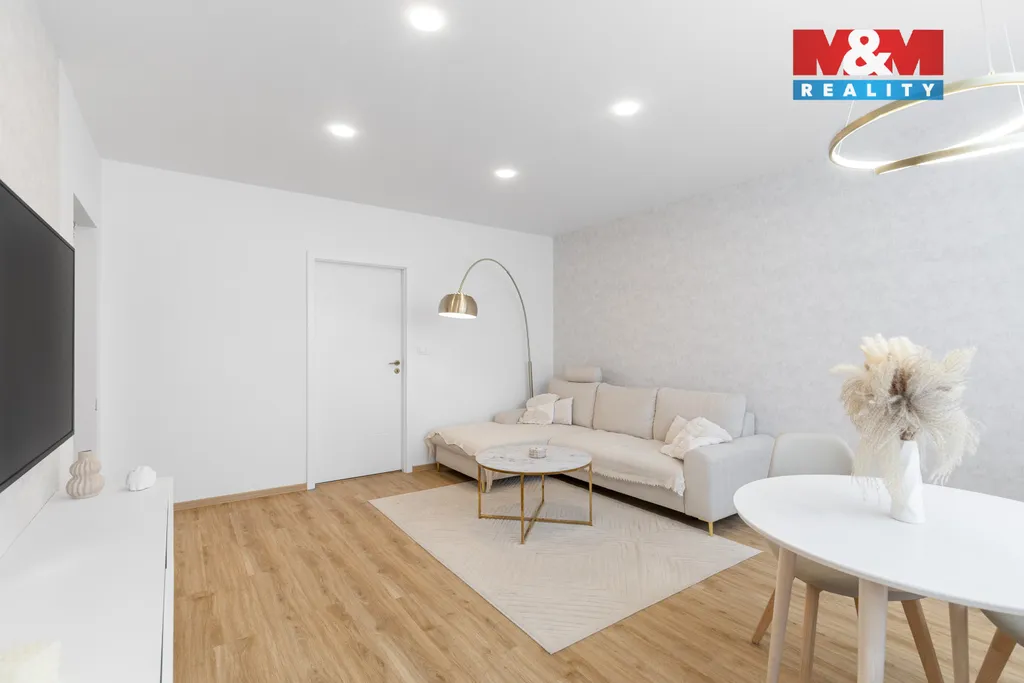 Exkluzivně nabízíme k prodeji byt v osobním vlastnictví o velikosti 4+1, s lodžií, o celkové výměře 86 m2, po velice pečlivé, designové, do detailu zhotovené rekonstrukci. Byt se skládá z kuchyně s vestavnými spotřebiči a velkým množstvím úložných skříněk, na ni navazujícího prostorného obývacího pokoje s jídelním stolem a dále tří ložnic, z nichž první slouží jako manželská ložnice, druhá jako dětský pokoj a třetí má nyní funkci dámské šatny s kosmetickým stolkem. Velkoryse pojatá koupelna disponuje dvěma umyvadly, sprchovým koutem i vanou. Hned vedle koupelny je samostatné WC. Další úložné prostory se pak nacházejí v předsíni, tak jako i dvě menší komory, ve kterých jsou umístěny pračka se sušičkou a v druhé technické zázemí. K dispozici je také nadstandardně velký sklep s možností uložení kočárku, kol atd. Dostupnost MHD, tak jako blízkost školek, škol i veškerých služeb je samozřejmostí.