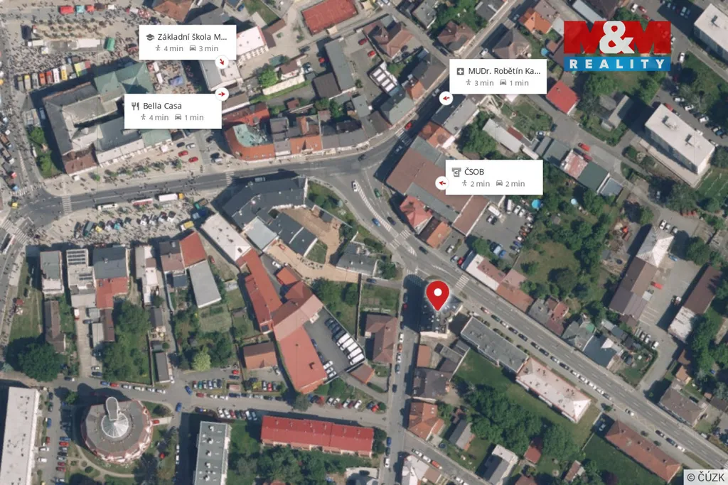Velkou výhodou je samotná poloha bytu – v docházkové vzdálenosti se nachází centrum města s kompletní občanskou vybaveností, jako jsou obchody, školy, lékaři i restaurace.
