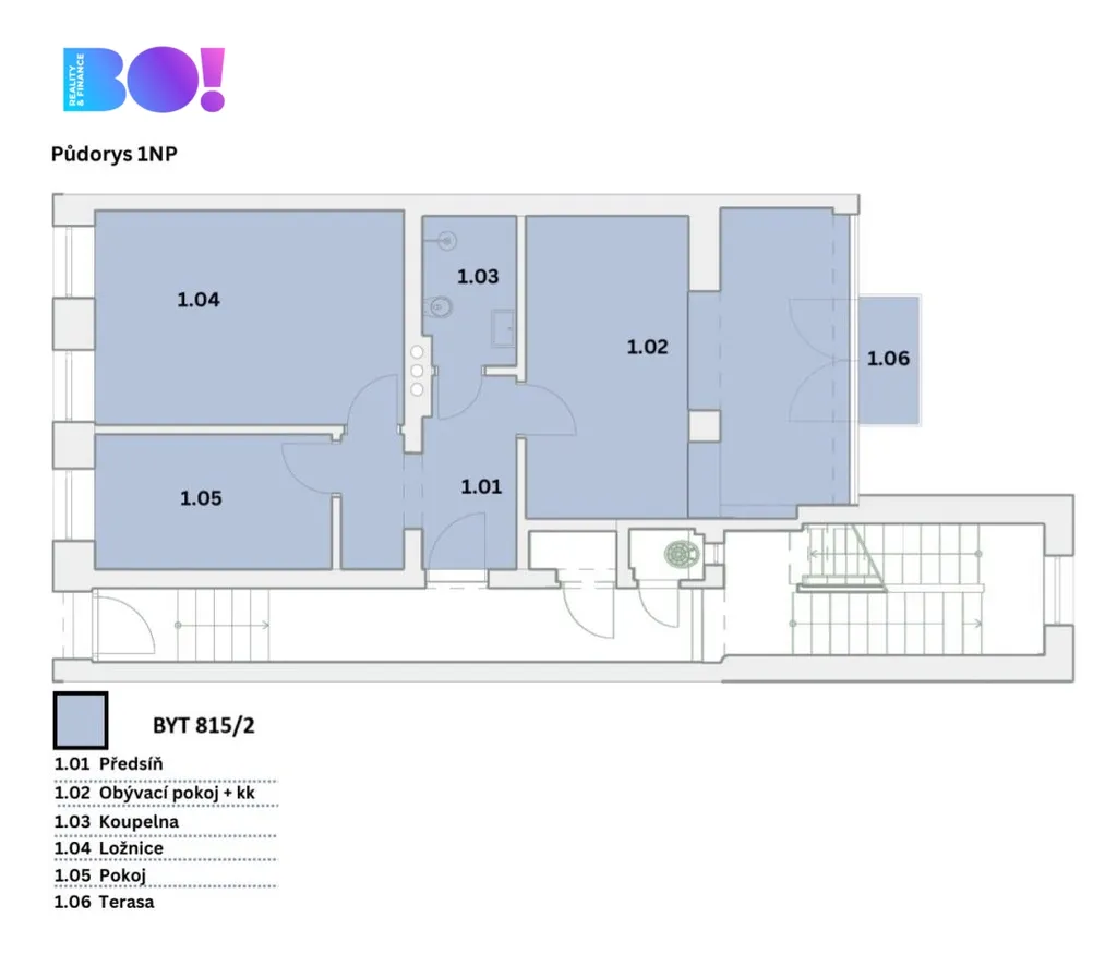 • Byt 1: 57,27 m² + lodžie 15,6 m²