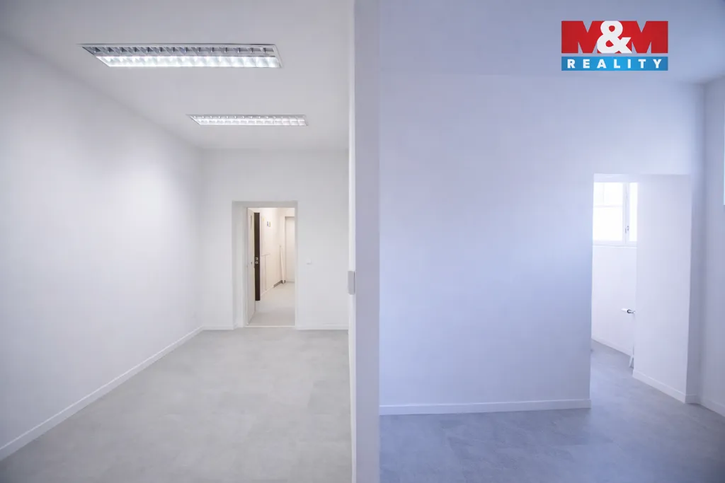 Nabízíme k pronájmu lukrativní nebytové prostory kolaudované jako kanceláře v centru města, které jsou situované v ikonické budově bývalého Tuzexu. Výhodou jsou 2 velké výlohy, které lze využít k propagaci, dále 2 reklamní výstrče schválené památkáři. Prostory disponují hlavní místností o velikosti 58,88 m2 a menší kanceláří, zázemím s kuchyňkou, toaletou a skladem. celková výměra činí 99,31 m2. Stav je nyní připraven k doladění dle Vašich požadavků, nyní se instaluje nová klimatizace a rekuperace. Prostory mají vlastní plynový kotel, svůj elektroměr a podružný vodoměr. Po dohodě lze pronajmout také garážová stání ve vnitrobloku. V domě mimo jiné sídlí notářská kancelář, kterou můžete využít pro ověřování podpisů.