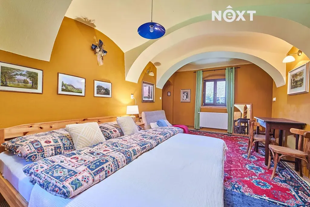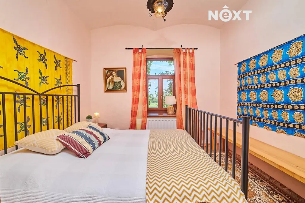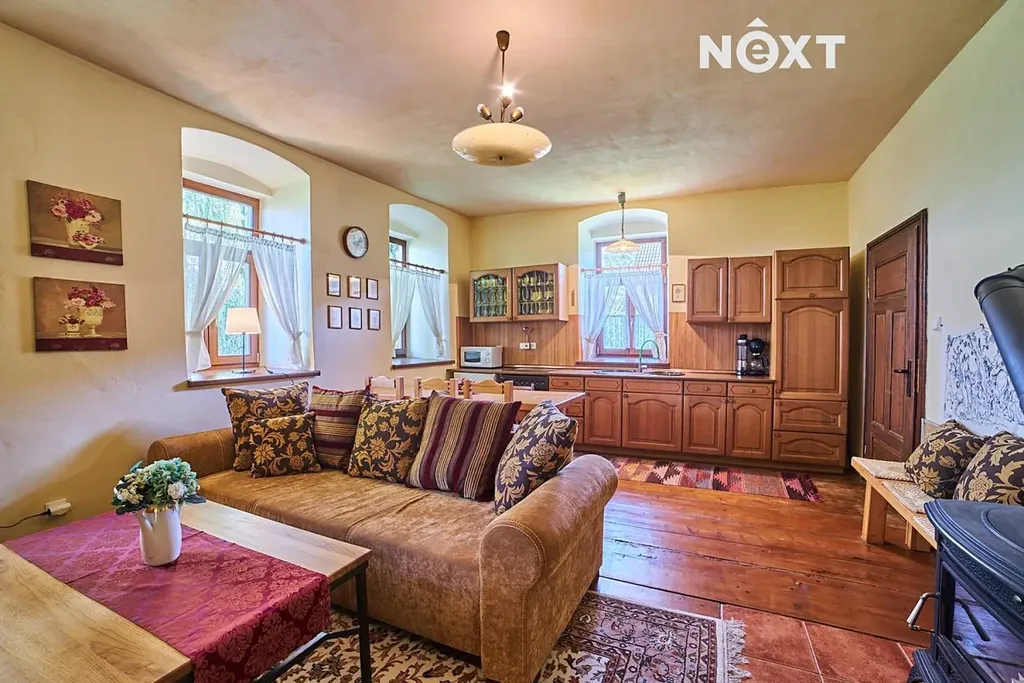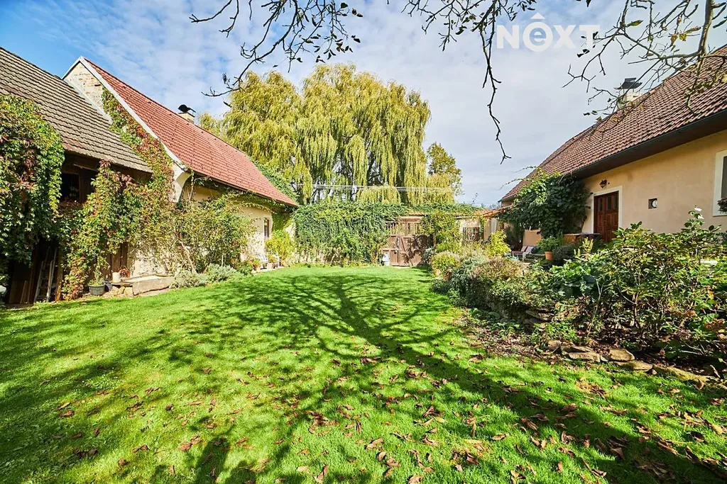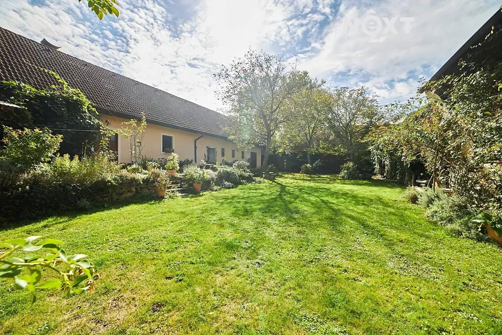 Na pomezí luk, rybníků a starých alejí stojí usedlost, která jako by se vytrhla ze staré pohlednice. V Mníšku u Stříbřece, kousek od Třeboně, se ukrývá oáza klidu, kde rána voní po růžích a večery ztichnou pod vrbami nad jezírkem. Tento tříkřídlý statek s absolutním soukromím, dvěma domy a rozkvetlými zahradami nabízí nejen krásu, ale i prostor pro nový začátek – ať už hledáte domov, útočiště, nebo místo, kde můžete tvořit. Hlavní dům (č.p.13, cca 255 m², 5kk) vás přivítá atmosférou francouzského venkova. V přízemí se nachází vstupní chodba, elegantní koupelna s vanou i sprchou, samostatné WC, technická místnost a především srdce domu – velkorysý obývací prostor s kuchyní, jídelnou a krbem, který je nejen zdrojem tepla, ale i klidného světla. Nechybí ani samostatná garsoniéra s vlastním vchodem a koupelnou – ideální pro hosty nebo samostatné bydlení. V patře najdete ložnici, šatnu, toaletu a prostorný pokoj s knihovnou a výhledem do korun stromů, který lze rozdělit. Nad tímto podkrovím se rozprostírá půda s potenciálem další výstavby. Z obývacího pokoje se vychází na jihozápadní terasu u jezírka, kde můžete v tichu naslouchat přírodě. Vytápění a ohřev vody zajišťuje tepelné čerpadlo s možností přepnutí na kotel na dřevo. Dům je napojen na obecní vodovod a kanalizaci, k dispozici jsou také dvě studny – na dvoře a v zahradě. Dešťová voda je svedena do malého přírodního rybníčku se studánkou, přímo před domem. Měsíční náklady na provoz činí přibližně 5 500 Kč. Druhý dům (č.p.50, cca 85 m², 2kk) se nachází v zadní části usedlosti a přístup k němu vede kolem rybníčku a vrby. Působí jako tiché zázemí pro hosty či rekreační pronájem. Nabízí vstupní předsíň, koupelnu, samostatné WC, ložnici a obývací pokoj s kuchyňkou a krbovými kamny. Zdejší posezení s výhledem na pastviny a koně navodí pocit, že jste daleko od všeho. Zahrady jsou živým obrazem – na jaře a v létě tu rozkvétají růže, hortenzie, levandule a další květiny. V zadní části najdete ovocné stromy, skleník, pastvinu, ohniště i výběh pro ovce. Hospodářská křídla nabízejí ustájení pro koně, dílny a sklady. Pozemek má 13 997 m², příjezd je po vlastní cestě a smožností parkování pro 4 vozy. Tento statek je výjimečný nejen svým prostorem a stylem, ale hlavně duší. A možná bude mít i tu vaši. Pro komunikaci uvádějte evidenční číslo zakázky N116472.