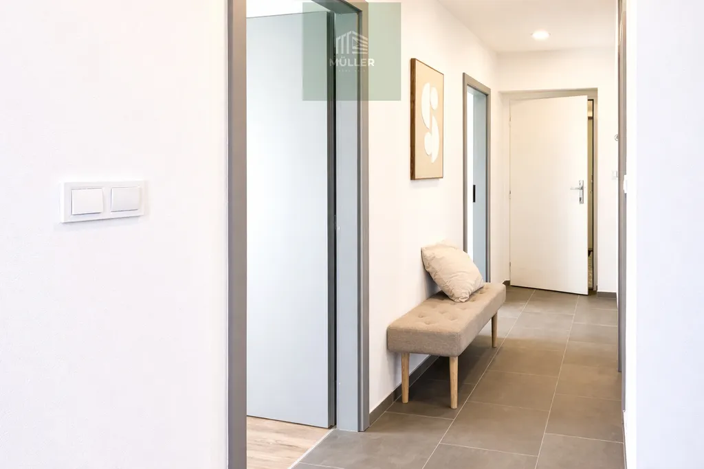 Byt prošel citlivou rekonstrukcí s důrazem na praktičnost a moderní, nadčasové barevné provedení. Interiér působí velmi svěže, harmonicky a poklidně. Dispozice je promyšlená do detailu – nově vzniklá šatna nabízí dostatek úložného prostoru a v celém bytě jsou chytře rozmístěné zásuvky a vypínače pro maximální komfort budoucích majitelů.