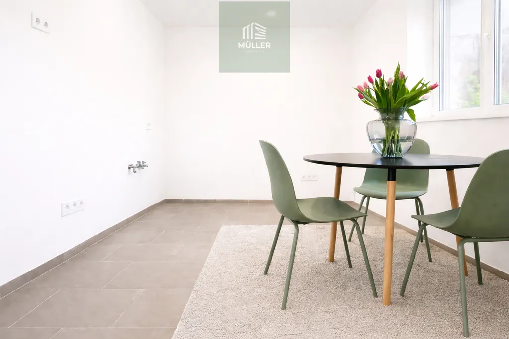 V kuchyni není instalována kuchyňská linka, což dává novému majiteli možnost realizovat vlastní představu o prostoru podle individuálních potřeb. Veškeré rozvody, zásuvky a přípravy jsou již hotové – instalace nové kuchyně tak může proběhnout okamžitě a bez dalších stavebních zásahů.