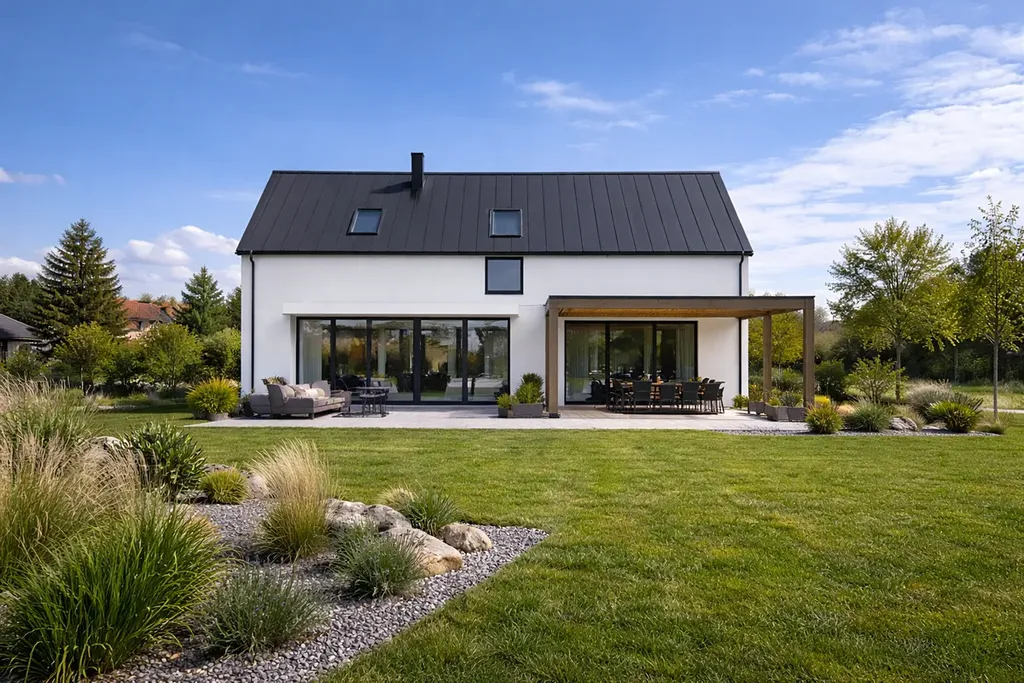 Přiložená studie domu vzorová, kupující si může postavit svůj dům podle vlastních představ.