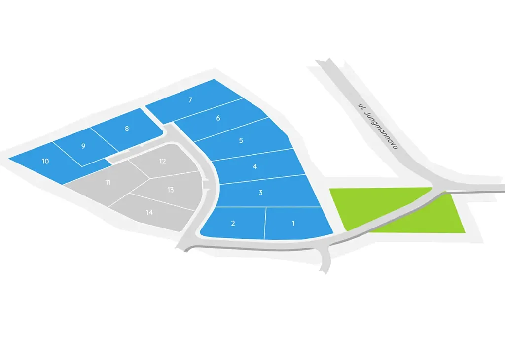 Jednotlivé pozemky mají výměru: 1 082 m2, 1 000 m2, 950 m2, 733 m2, 1 057 m2. Neváhejte a vyberte si velikost a umístění pozemku.