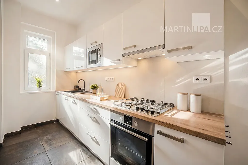 Je to prostě byt pro někoho, kdo ocení vkusnou rekonstrukci ve starší zástavbě a chce mít všechno po ruce. Přijďte se podívat sami, jestli na vás ten prostor zapůsobí stejně příjemně jako na mě.