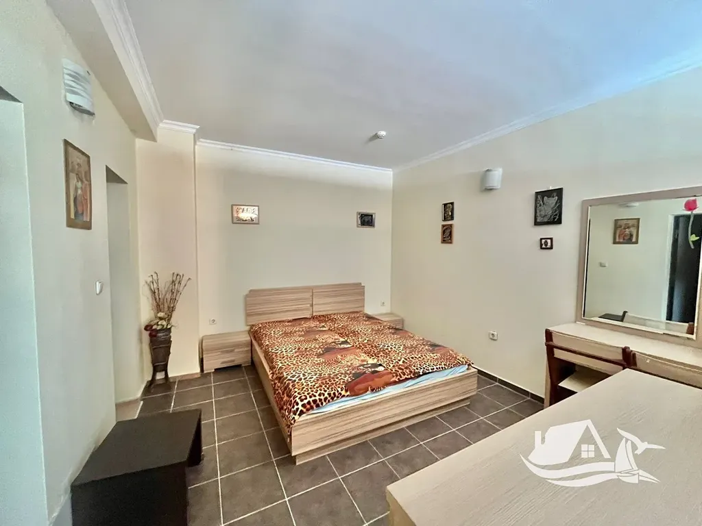 Interiér je moderně zařízený, s dostatkem přirozeného světla a útulnou atmosférou. Apartmán je plně vybaven a připraven k okamžitému nastěhování – ideální volba pro pár, jednotlivce nebo jako rekreační bydlení u moře.