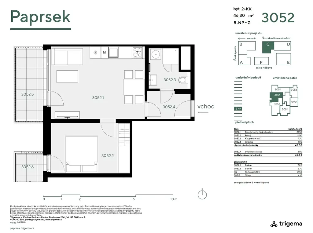Nabízíme Vám jedinečnou nabídku pronájmu moderního bytu 2+kk nacházející se v rezidenčním komplexu PAPRSEK – přímo u stanice metra B – Stodůlky. Tento byt je umístěn v 5. NP a s užitnou plochou bytu 46,3 m2 + 2 balkony 9,9 m2 - je ideální pro pár nebo jednotlivce, kteří ocení luxusní a moderní design.