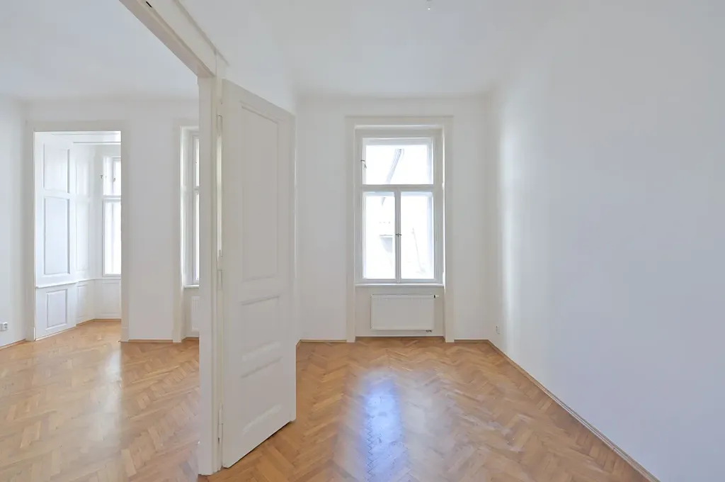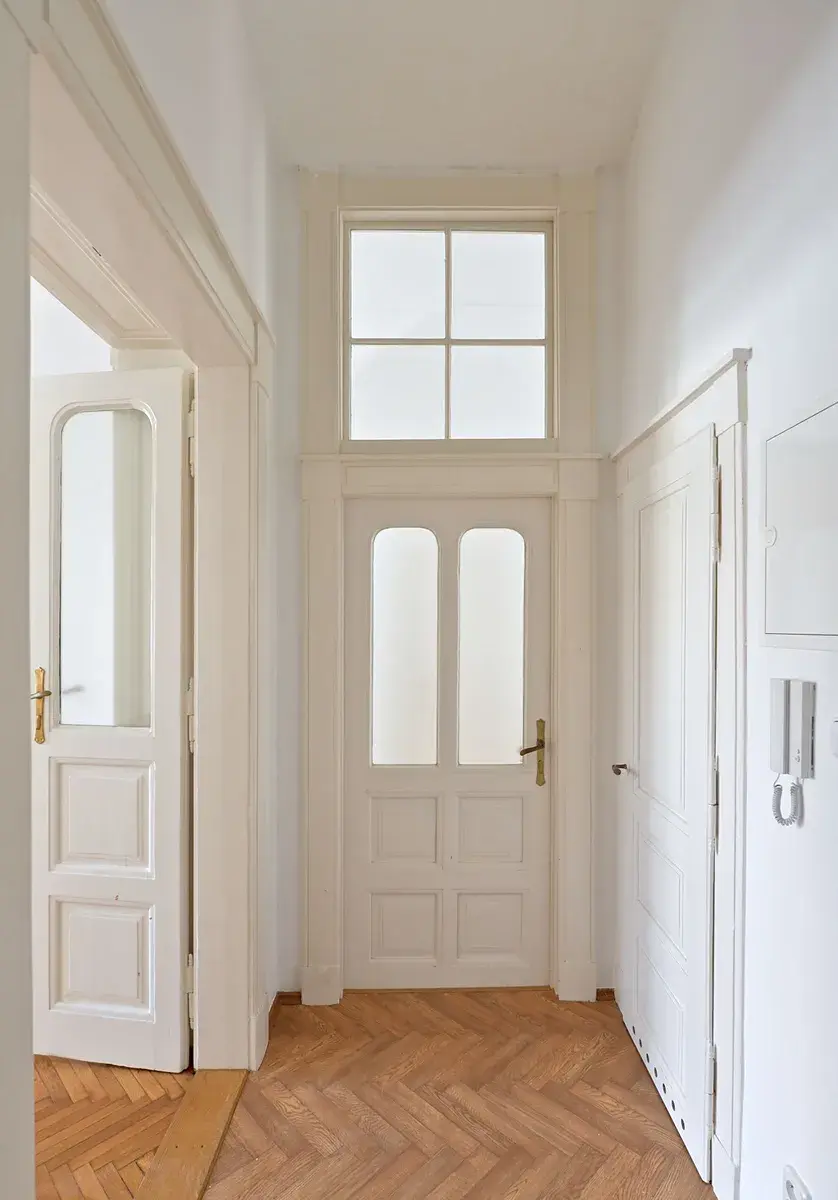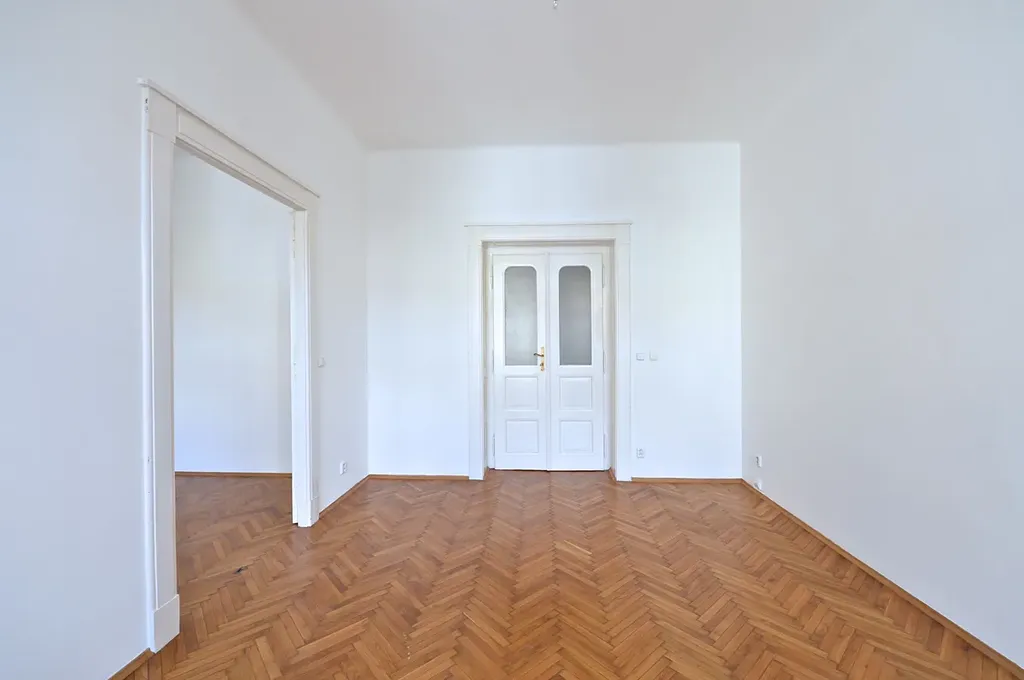 Byt s klasickými vysokými stropy a krásným výhledem nacházející se ve 2. patře prošel před nedávnem základní rekonstrukcí, je vymalovaný, všechna okna jsou repasovaná, na podlahách jsou parkety ve velmi zachovalém stavu, do obývacího pokoje i do ložnice vedou dřevěné křídlové dveře.
