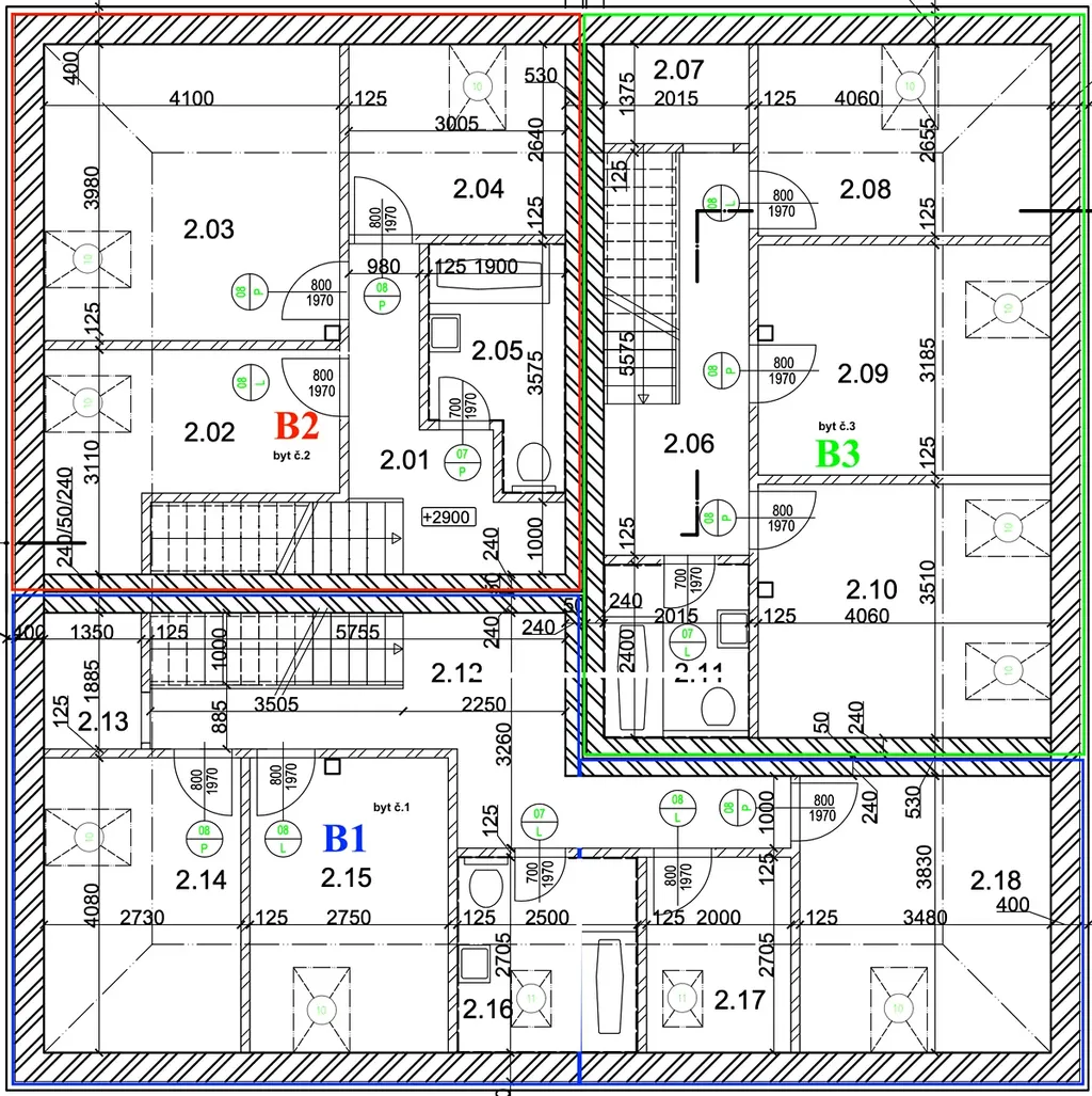Byty B2 a B3 (4+1) jsou dispozičně řešeny následovně:
