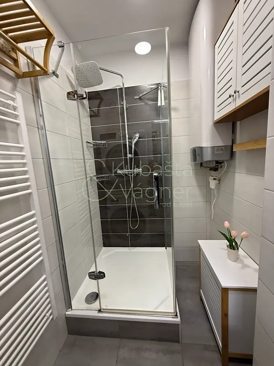 Byt prošel kompletní a velmi povedenou rekonstrukcí s důrazem na kvalitu provedení a použití kvalitních materiálů. Dominantou a srdcem interiéru je prostorný obývací pokoj, na který navazuje parádní a plně vybavená kuchyně – vestavná lednice, plynová deska, elektrická trouba, mikrovlnná trouba a myčka.