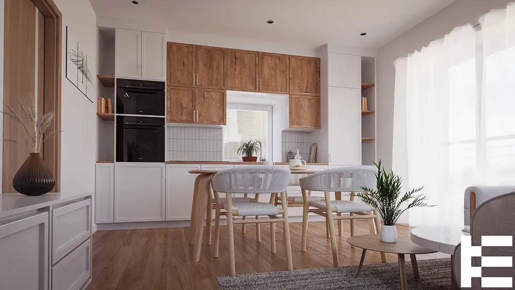 Dům je cihlový, zateplený a má ve standardech plastová okna s dvojskly. Byt je vybaven kuchyňskou linkou, která na fotkách ještě nebyla hotová. Najdete zde vinylové podlahy, keramické obklady a dlažby, elektrické podlahové vytápění a ohřev vody slouží bojler.