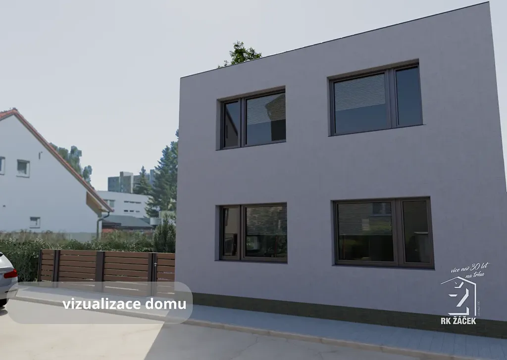 Součástí prodeje je projekt moderního rodinného domu o dispozici 3+kk a platné stavební povolení, takže můžete začít stavět bez zdlouhavého vyřizování. Navržený dům má zastavěnou plochu 62,2 m² a užitnou plochu 94,5 m². V přízemí se počítá s obývacím pokojem s kuchyňským koutem, zádveřím, technickým zázemím a samostatným WC, v patře pak se dvěma pokoji a koupelnou. Projekt myslí i na praktické detaily, jako je úložný prostor a parkování přímo na pozemku.