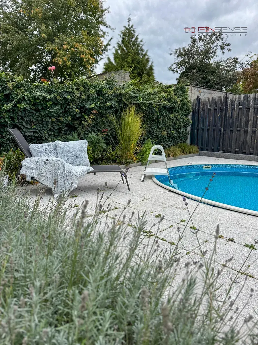 Příjemné prostředí doplňuje udržovaná zahrada s bazénem a možností posezení na terase.
