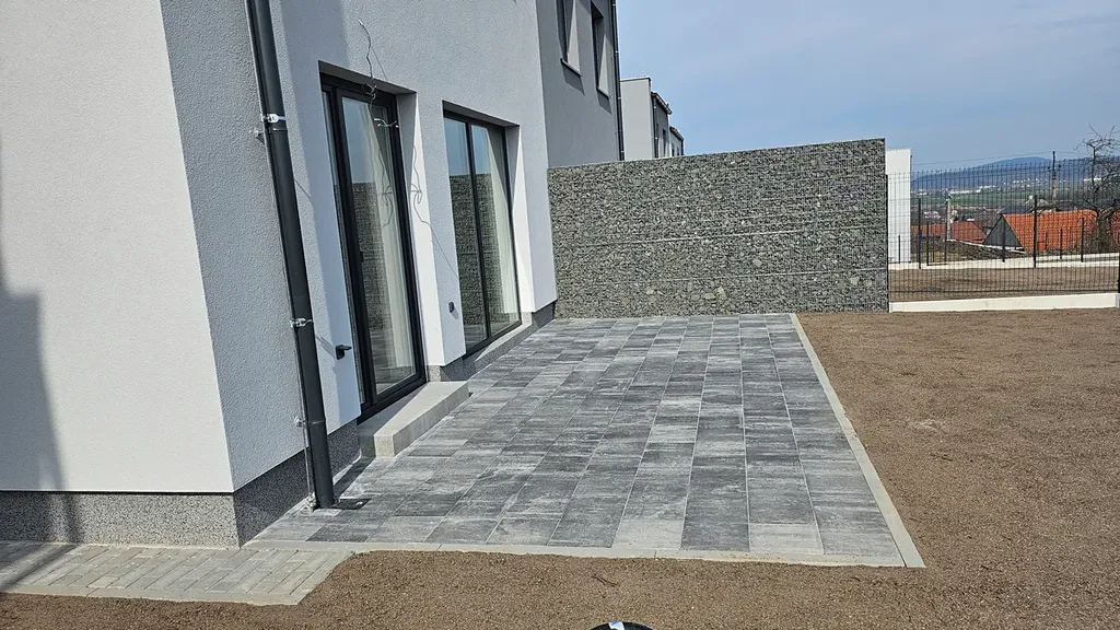 Nabízíme moderně pojatý řadový rodinný dům, který vyniká praktickým řešením půdorysu. Dům o dispozici 5+kk s obytnou plochou 116m2 je navržen tak, aby zajišťoval svým obyvatelům klidné, pohodlné bydlení s dostatkem soukromí. Celými interiéry prostupuje přirozené světlo díky pečlivě zvolené orientaci oken. Hlavním vchodem z ulice se dostaneme do vstupního zádveří, kde můžeme vstoupit do pracovny a z druhé strany do technické místnosti a samostatného WC. Následuje vstup do hlavního obývacího prostoru, který se sestává z kuchyně, jídelny a obývací části, která je velkolepě prosvětlena a propojena se zahradou velkým francouzským oknem s balkonovými dveřmi. Po schodišti, pod kterým je prakticky umístěna komora, vystoupáme do 1.patra, kde se nachází dva obytné pokoje s výhledem do zahrady, velká ložnice jejíž součástí je samostatně uzavíratelná šatna a prostorná koupelna se dvěma umyvadly, sprchovým koutem, vanou a kombinovaným WC s bidetem. Dvě samostatná parkovací stání a zděná garáž zajišťují vždy pohodlné parkování. Dům stavěný klasickou zděnou technologií s vynikající tepelnou ztrátou 4,2kWh je opatřen nadstandardními izolačními materiály. Vytápění řešeno moderním tepelným čerpadlem švédské značky IVT, které se vyznačuje maximální úsporností a minimální hlučností. Pro nemovitost je zajištěna příprava pro snadné připojení FVE. Město Hořovice disponuje veškerou občanskou vybaveností (MŠ, ZŠ, Gymnázium, SOŠ a SOU, obchody, restaurace, nemocnice, lékaři). Výborná dostupnost dálnice D5 (Praha – Plzeň) exit 34 – 4km.