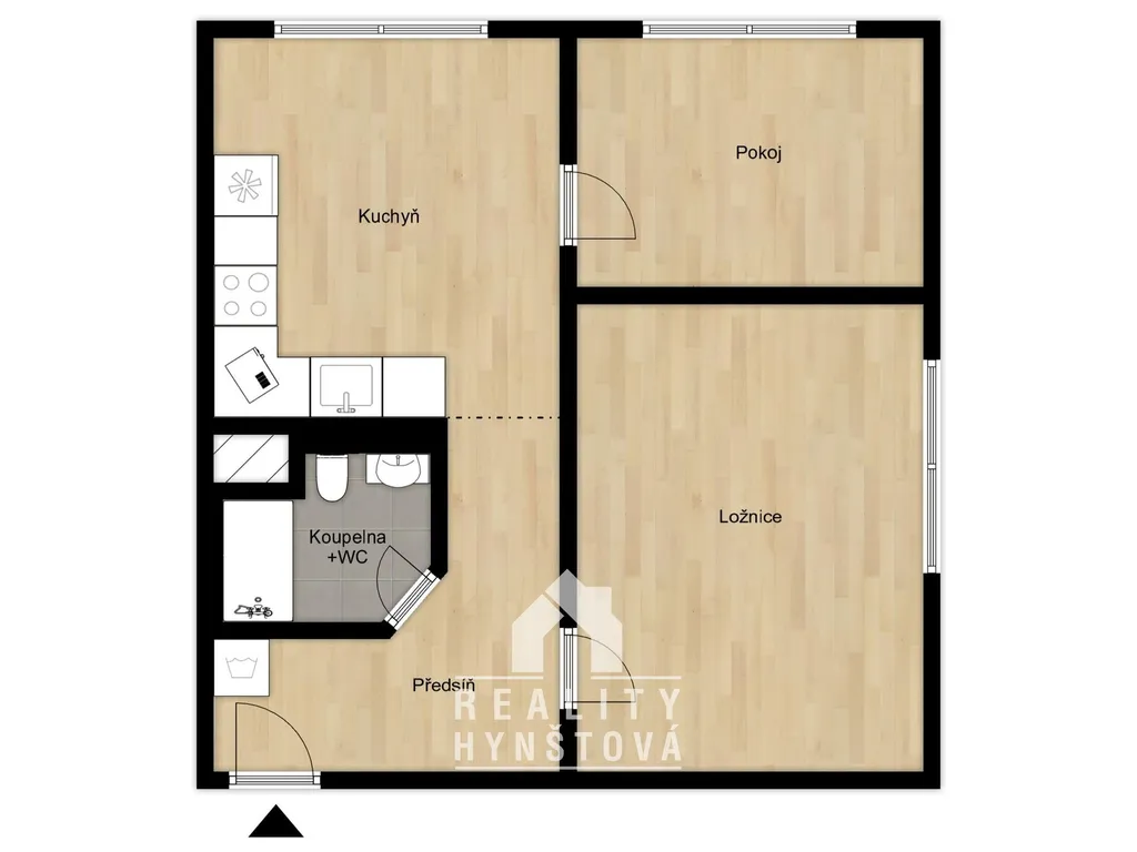 Celková plocha bytu činí 45,5 m2 a náleží k němu sklepní box (1,5 m2).