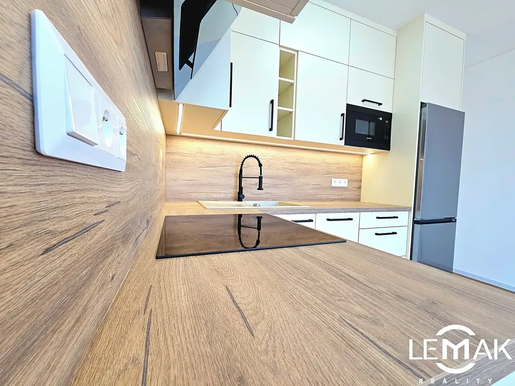 Interiér je řešen v moderním a čistém stylu. Podlahy jsou vinylové, kuchyňská linka s úložným prostorem až po strop je vyrobena na míru a plně vybavena spotřebiči značky Samsung. Součástí vybavení je také sada talířů, příborů, sklenice, hrnky atd., dvouřadé garnýže pro komfortní zastínění. Sedací souprava bude dovezena. Byt je tak připraven k okamžitému nastěhování bez nutnosti větších investic. Světla mají 3 režimy teploty chromatičnosti.