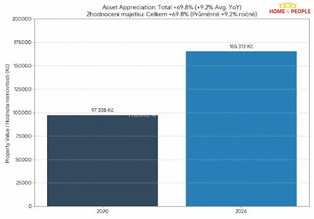 Výrazné zhodnocení 69,8 %: Prokazatelně rychle rostoucí aktivum s nárůstem hodnoty z 97 000 Kč na 165 000 Kč za 6 let, průměrné roční zhodnocení (CAGR) 9,2 %.
