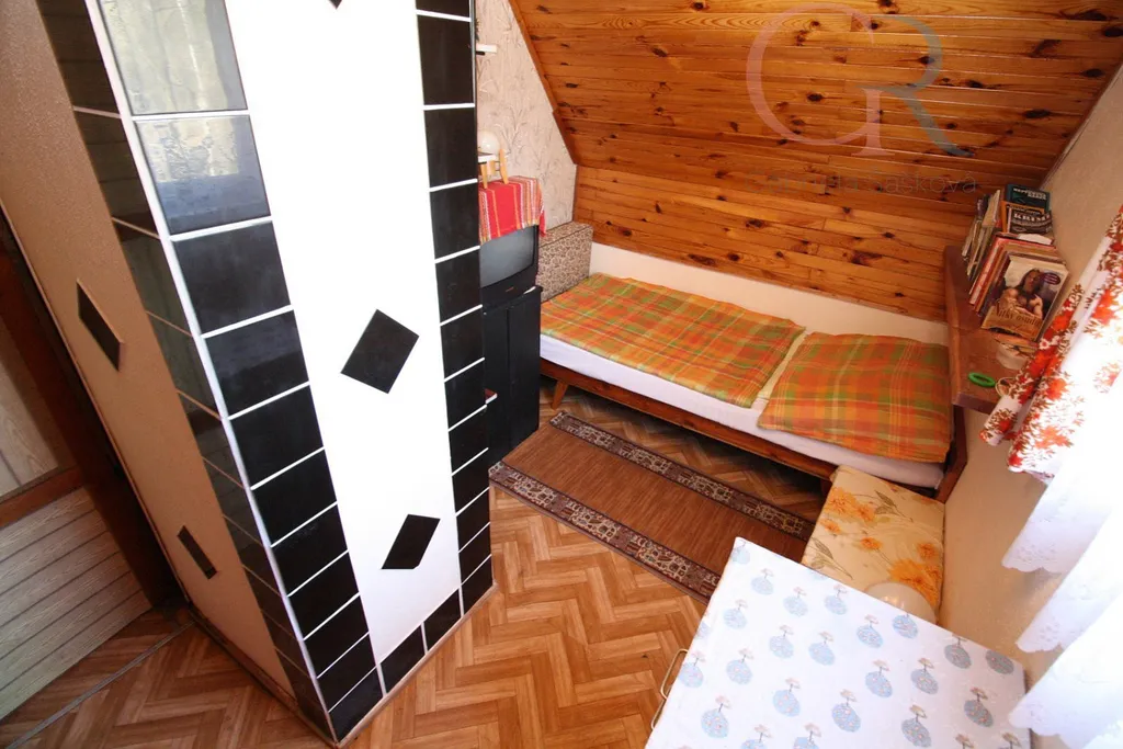 V suterénu se nachází sklepní prostor a pěkná dílna. V 1. NP je umístěna kuchyňka, obývací místnost a sprchový kout s toaletou. Ve 2. NP jsou dva útulné pokoje. Prostory jsou vhodné i pro větší rodinu. Prodej chaty je včetně vybavení.