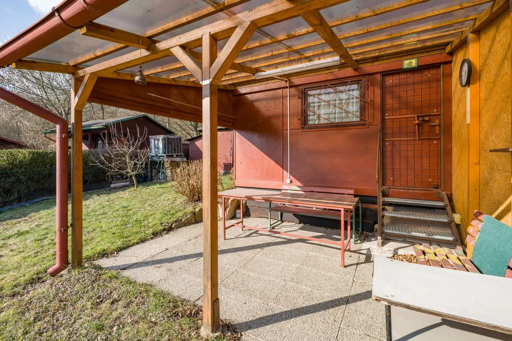 Nabízíme k prodeji útulnou chatu se zahradou v klidné části zahrádkářské kolonie města Chlumec u Ústí nad Labem. Ideální místo pro relaxaci, víkendový odpočinek nebo zahradničení v příjemném a tichém prostředí.
