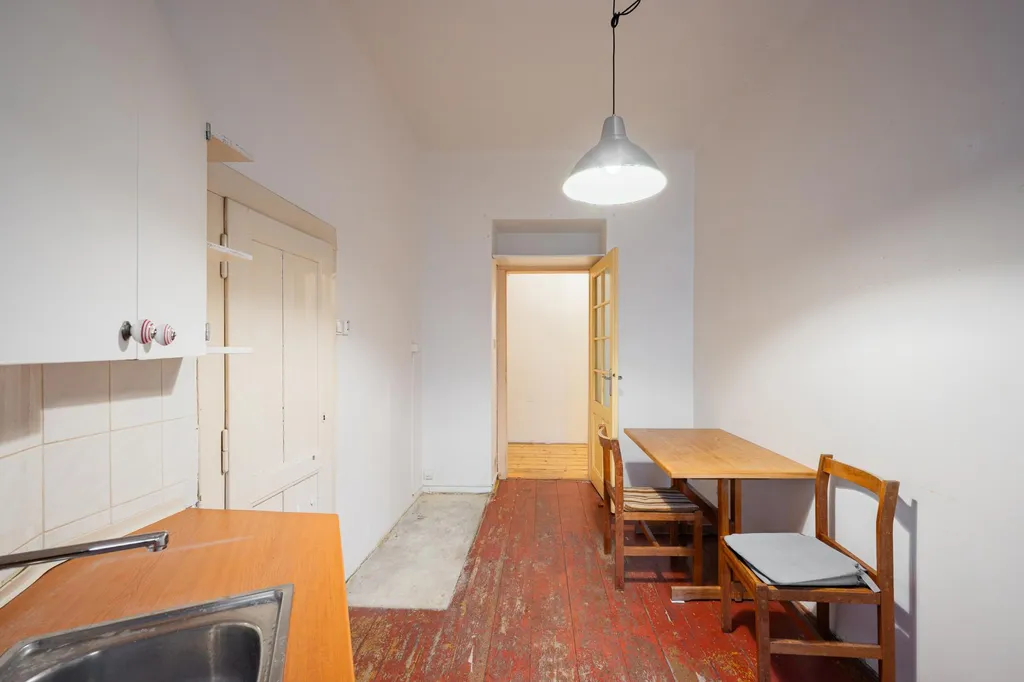 Byt je ve stavu před kompletní rekonstrukcí, bude třeba výměna elektroinstalace i rozvodů vody. Vytápění zajišťuje zánovní plynový kotel.