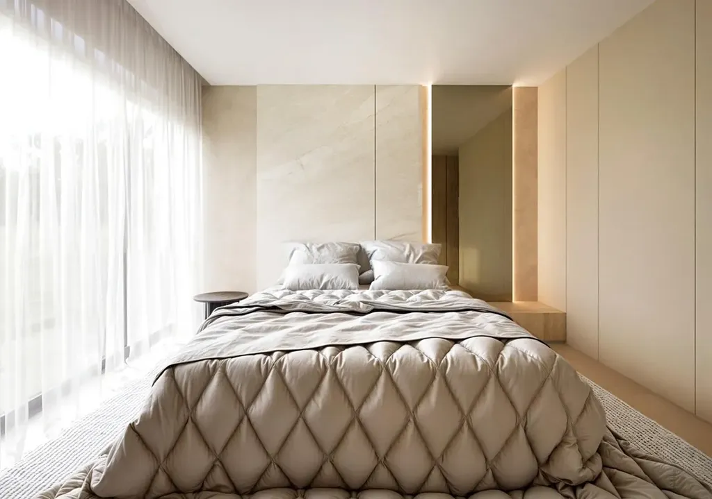 V patře jsou situovány čtyři komfortní ložnice. Hlavní ložnice disponuje vlastní koupelnou a vestavnou šatnou. Další tři prostorné pokoje mají k dispozici samostatnou koupelnu s vanou, sprchovým koutem a toaletou, stejně jako další oddělenou toaletu.
