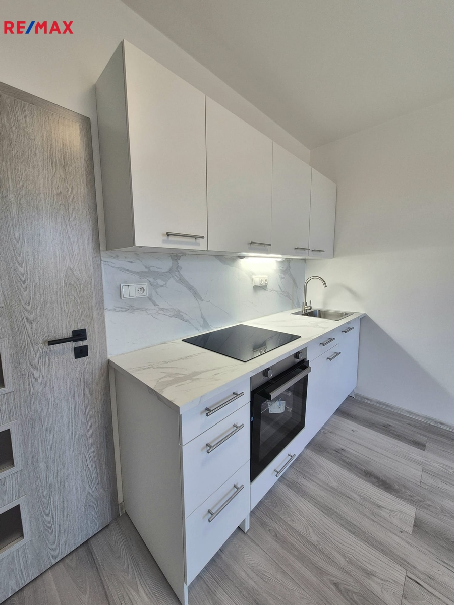 Byt prošel kompletní rekonstrukcí a je částečně vybaven. K dispozici je nová kuchyňská linka se sklokeramickou varnou deskou a horkovzdušnou troubou, vysoká úložná skříň nabízí dostatek prostoru pro umístění potravin či nádobí. Ložnice je vybavena romantickou kovou postelí a nočním stolkem. Přiložená vizualizace místností je pouze ilustrativní. Okna z obou místností jsou orientována na severní stranu, v letních měsících tak bude byt příjemně přistíněn. Výhled do přilehlého parku navíc zabezpečuje absolutní soukromí, bez pohledů ostatních sousedů. Bezproblémové parkování bez placených zón.