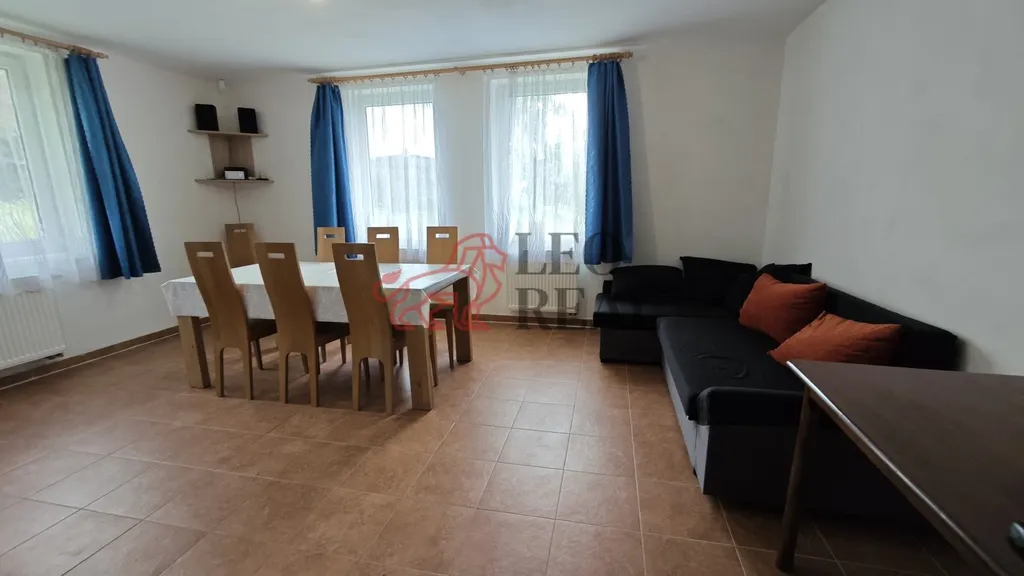 Obytná plocha domu je celkem 140 m2, v domě jsou 2 kuchyně, 2 koupelny a 4x toaleta. V koupelnách jsou sprchové kouty. Plastová okna s dvojskly. Vytápění zajišťuje elektrický kotel Protherm, ohřev vody 200L boiler, kanalizace tlaková, voda obecní.