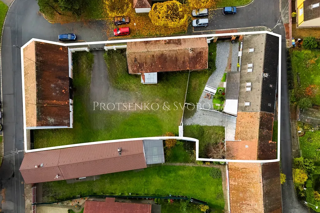 Nemovitost tvoří uzavřený areál s rozlehlým dvorem a souborem několika budov, které poskytují široké možnosti využití – od komfortního rodinného bydlení až po stabilní investiční záměr s pasivním příjmem.